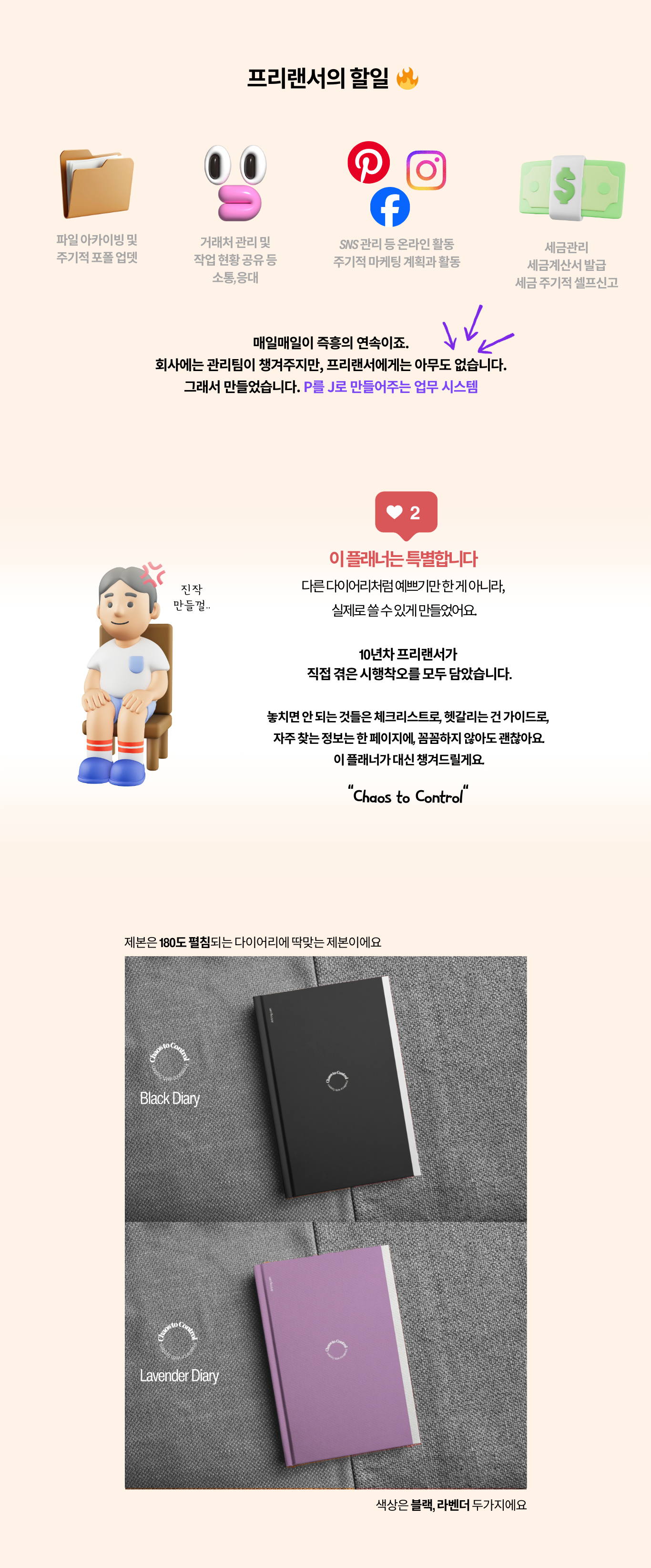 #프리랜서 #프로젝트관리 #다이어리 #플래너 #텀블벅 #크라우드펀딩 #아티링 #ChaosToControl #프리랜서다이어리 #업무관리